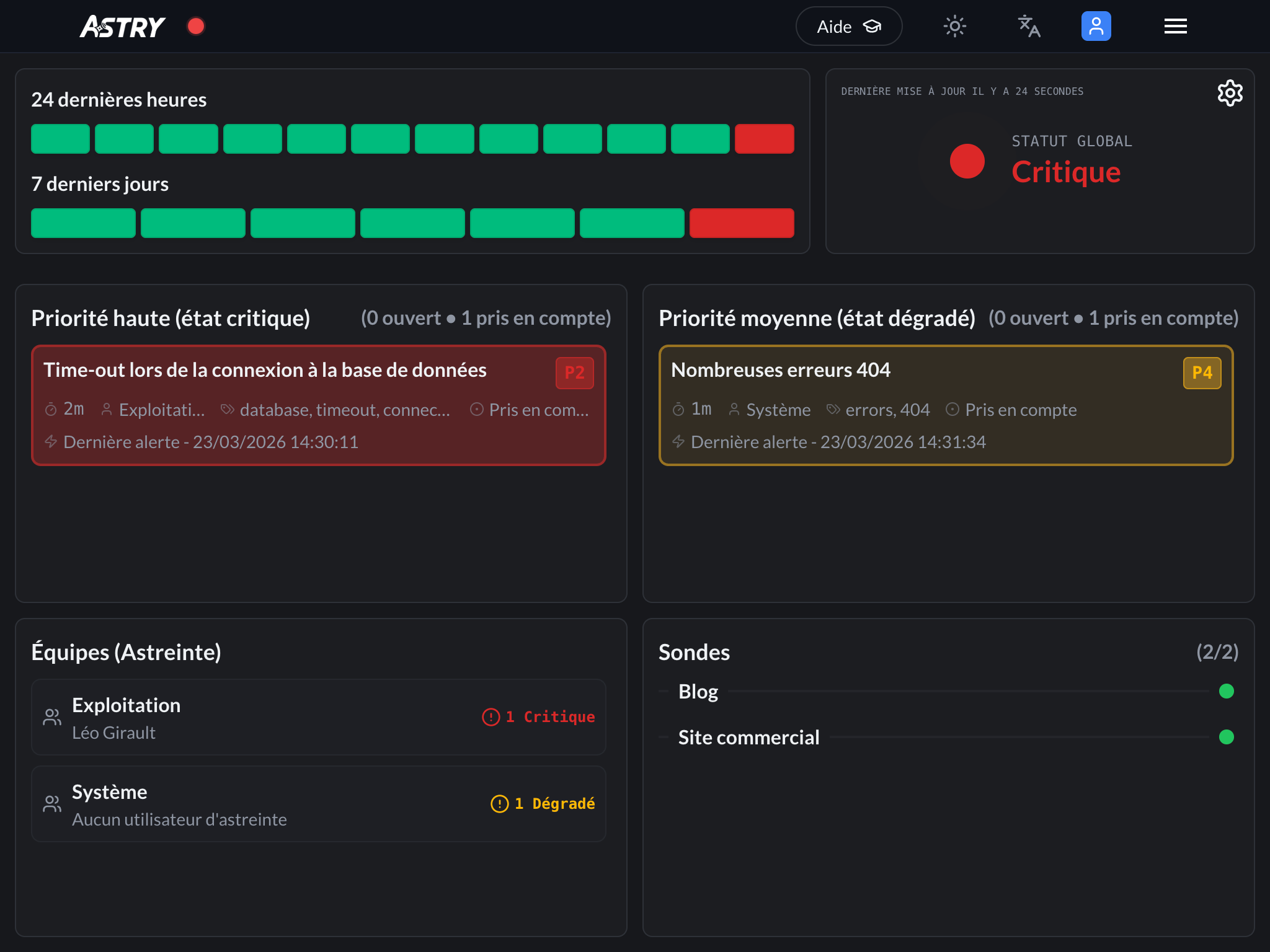 - 🔴 Critique : des incidents majeurs nécessitent une attention immédiate